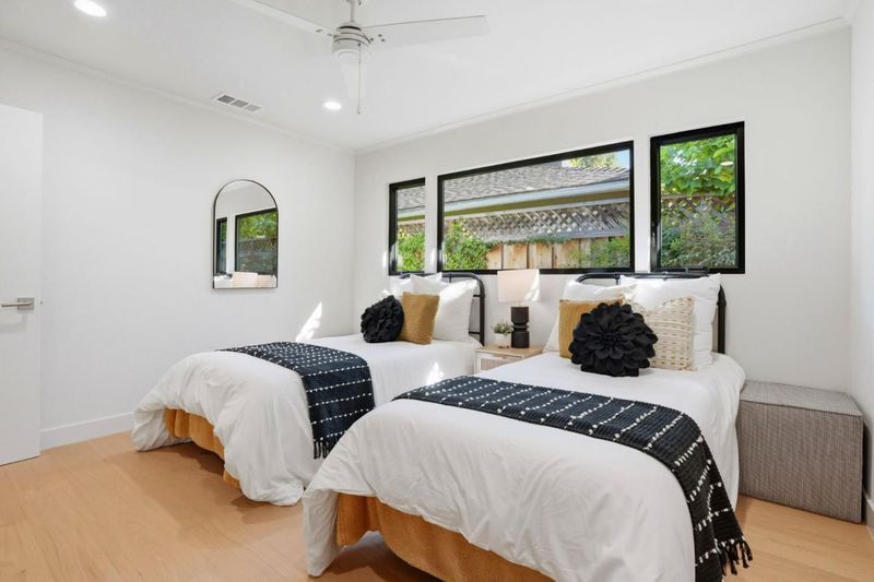 Beautifully reimagined Menlo Park home on pristine street in coveted Willows neighborhood. This 1950s single level, mid-century beauty has been lovingly improved to perfection, light & bright California living at its best w/spades of natural light flowing through the gorgeous new Milgard Windows. Perfect combination of comfort and sophistication, in this well-designed floor plan with 3 spacious bdrms PLUS private home office & separate bedroom wings, allowing utmost of privacy. 2 gorgeous high-end baths, Gourmet chef's kitchen, 2 sinks, Butler's pantry, top-of-the-line appliances & huge skylight. Perfectly situated dining room overlooking exquisite 1950s corner fireplace w/gas logs & serene rear gardens for indoor-outdoor entertaining. Attached, oversized 2 car garage w/skylights. Many upgrades in 2025 including: wide plank engineered wood flooring throughout, Milgard 300 windows & sliders, high efficiency HVAC & ducting, 200 AMP panel + sub-panel AND complete rewire, new high-end baths w/Brizo fixtures, Bosch appliances, custom lighting &smart switches, interior paint, door trim, baseboards &crown throughout. New landscaping, front and rear. Tucked into a super quiet Willows neighborhood, just minutes to high-tech, Stanford, excellent schools, parks, &vibrant downtown Palo Alto