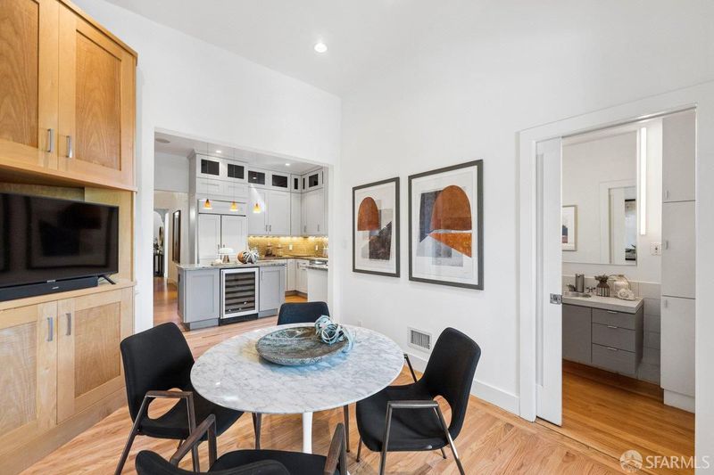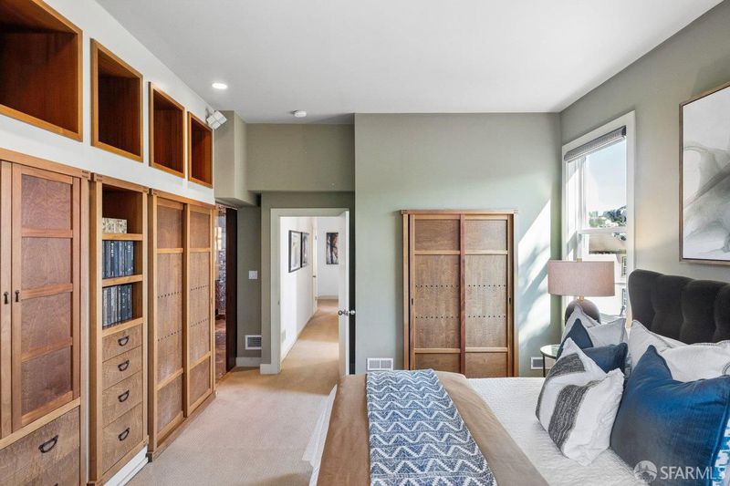 Step into this Meritorious Castro Victorian! First time on the market in 35 yrs. Lovingly cared for & updated by its owners. A Stick Victorian With 10' ceilings, wood floors, original detail and an enviable landscaped walk out garden on a large flat lot. The 1st flr has a double sized living room w/10+foot ceilings, a formal dining room,2 Peter Mangan glass/metal light fixtures, a pendant in the vestibule & chandelier in the dining room. The LR has a fireplace, lush hardwood floors and a Berkeley Mills custom entertainment center. Continuing to a large kitchen/a Monogram 6 burner gas range, paneled refrigerator/freezer, Advantium speed cook oven, convection oven, Bosch dishwasher & warming drawers + Instant hot & filtered taps. The Island has additional storage & a wine cooler, illuminated art boxes punctuate the kitchen with its stone, stainless & storage! The breakfast room has another custom built in entertainment cabinet and a full bath. The French doors open out onto a large deck w/ hot tub and then continue to expand on this 125' (per tax records) lot. With a large Monterey Cypress tree and 20 perimeter Ficus trees (appx 25' tall) to provide the ultimate in privacy. The upper level has three bedrooms (one is currently used as an office) and two baths. The huge primary suite on the garden side of the home has a walk-out deck, beautifully remodeled bath with heated marble floors, towel warmer, 2 separate sinks/vanities and a large shower. The suite is finished with a custom Berkeley Mills built-in floor to ceiling (African Sapele & Honduras Mohogany) tansu style closet-dresser-entertainment center. Double paned windows and a sliding door for access to deck. The second bedroom also has double paned windows, and direct access to the second full bath which is perfect for friends/ family. The third bedroom is currently used as a home office for two, with custom built-in cabinetry, a cedar closet, shelves, file cabinets and two desks. This room could be converted back to a proper bedroom. The garage/basement level has parking for 2 cars, a very high ceiling and an enormous amount of storage, along with laundry area with Samsung washer/dryer. Steps to the heart of Castro Village, Muni, Commuter busses, Eureka Valley dog park, The Famous Castro Theater and Mollie Stone's market. Are you ready to steward this Architectural beauty into its next chapter?