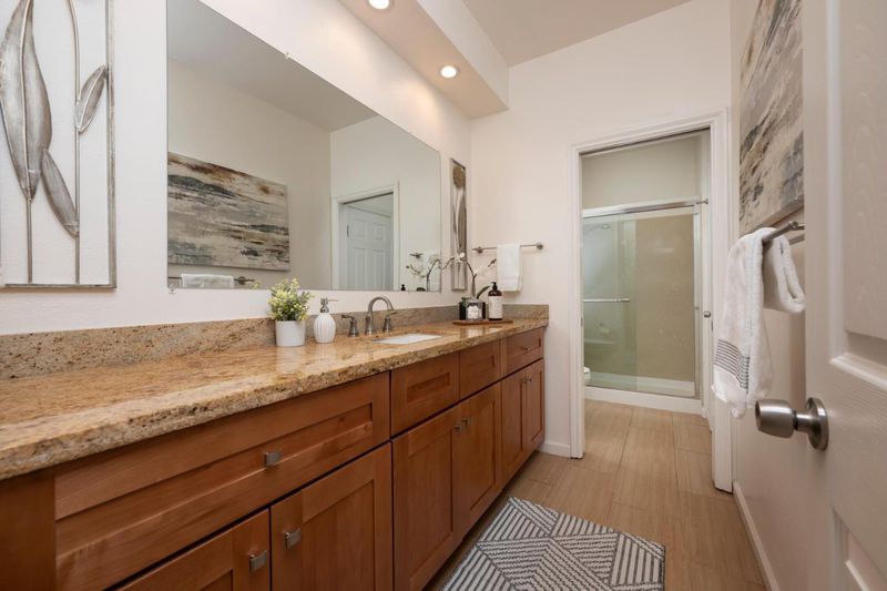 - Double Sinks, Shower over Tub - 1, Stall Shower, Tub in Primary Bedroom, Updated Bath