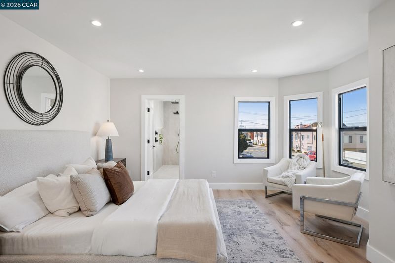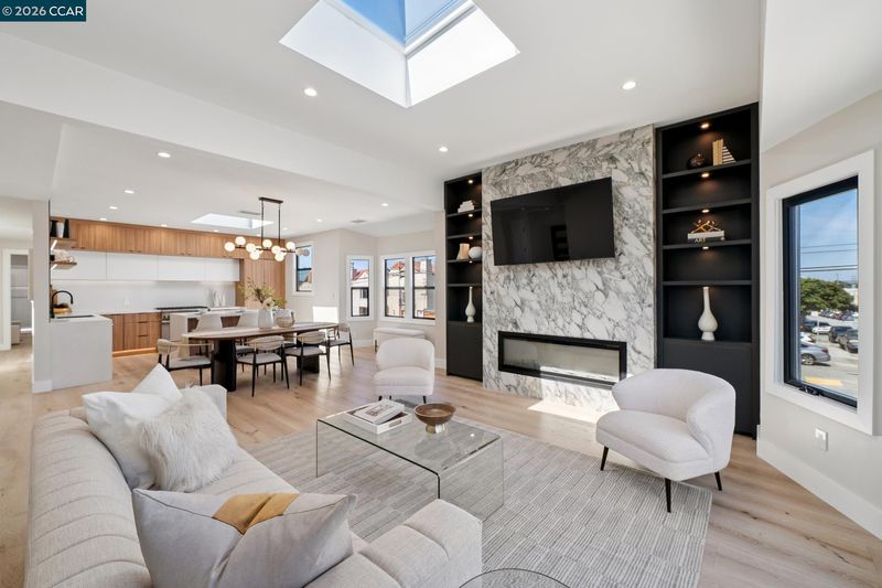Meticulously reimagined from the studs up, this exceptional Sunset District residence blends modern luxury with refined craftsmanship throughout. Rebuilt with all new electrical, plumbing, and HVAC including air conditioning, the home features a flawless Level 5 smooth wall finish and wide plank white oak engineered hardwood flooring. Soaring ceilings and newly added skylights flood the open concept living, dining, and kitchen areas with natural light, creating an inviting and elevated atmosphere. The designer culinary hub showcases walnut European style cabinetry, quartz countertops with a waterfall island, and premium appliances including a Thermador range and dishwasher, Bosch refrigerator, two zone wine refrigerator, and a microwave drawer. Upstairs, the skylit primary suite and additional en suite offer spa inspired baths with curbless showers, heated floors, heated towel racks, Toto bidets, and Hansgrohe fixtures. A striking glass enclosed staircase with LED lighting leads to the lower level featuring two additional en suites, a wet bar, and a spacious second living area. Bifold doors open to a low maintenance backyard with artificial turf and a pergola, creating seamless indoor outdoor living. A rare offering in one of San Francisco’s most coveted coastal enclaves.