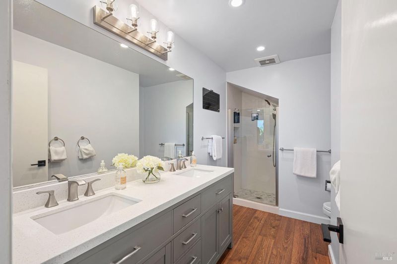 Recently remodeled in 2022, this 3-bedroom, 2.5-bath townhome blends modern upgrades with timeless design across 1,730 sq ft. Sunlight fills the sunken living room with fireplace, skylights, and radiant heated floors extending into the gourmet kitchen with Caesarstone countertops and stainless steel appliances. A private balcony invites indoor-outdoor living. The guest bedroom is thoughtfully configured with dedicated office space and in-unit laundry, an uncommon and versatile feature. Additional highlights include owned Tesla solar, generous storage, and flexible living spaces ideal for entertaining or daily life. Located in the heart of Sausalito, enjoy easy access to Highway 101, nearby trails, and the Mill Valley-Sausalito path. Local favorites and Downtown Sausalito are just minutes away, offering a perfect balance of convenience, charm, and coastal lifestyle.