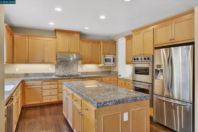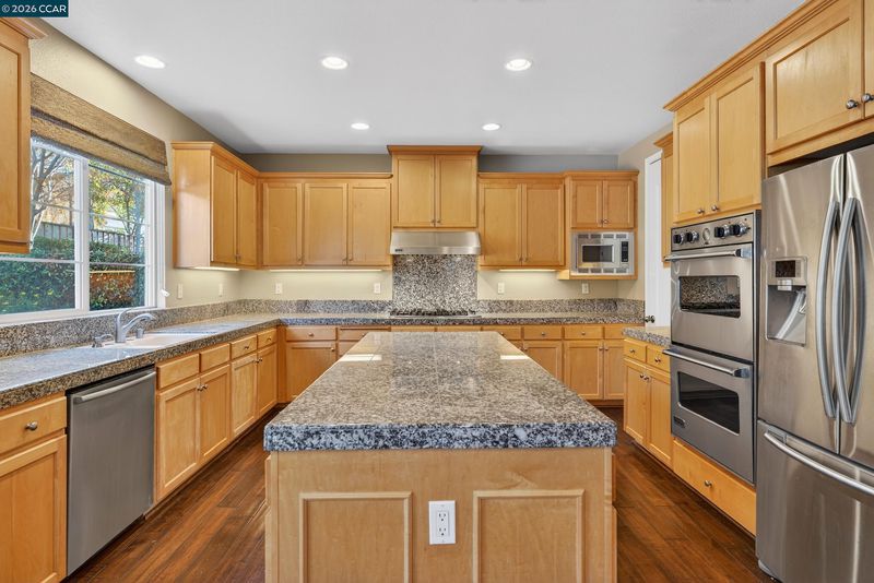 - Dishwasher, Double Oven, Gas Range, Plumbed For Ice Maker, Microwave, Oven, Range, Refrigerator, Self Cleaning Oven, Gas Water Heater, Breakfast Bar, Stone Counters, Disposal, Gas Range/Cooktop, Ice Maker Hookup, Kitchen Island, Oven Built-in, Pantry, Range/Oven Built-in, Self-Cleaning Oven