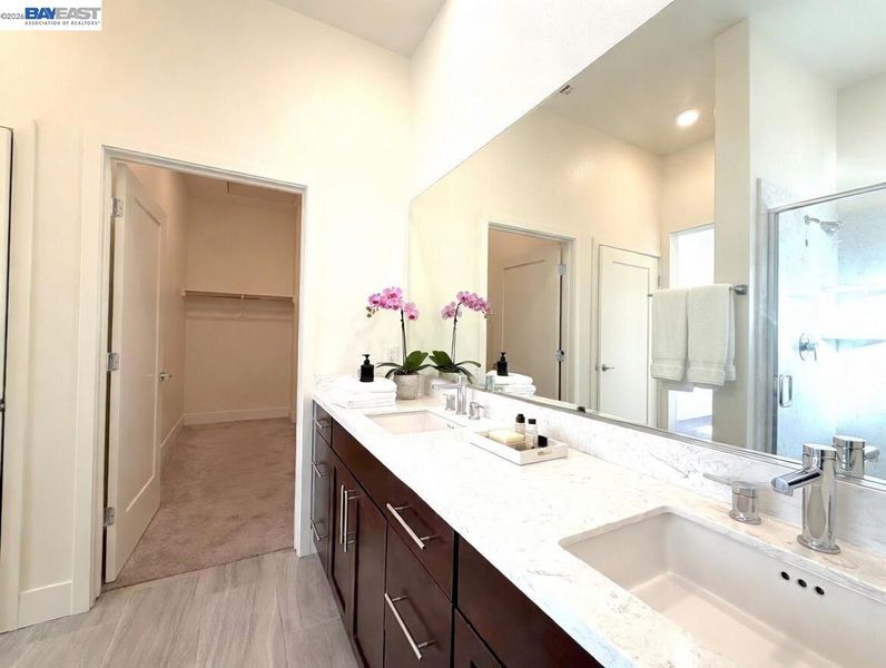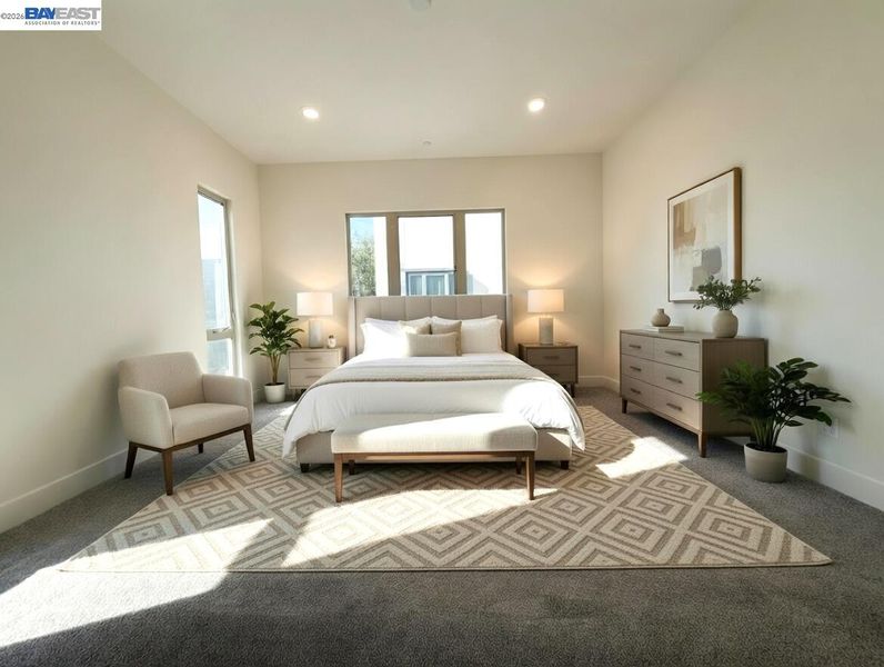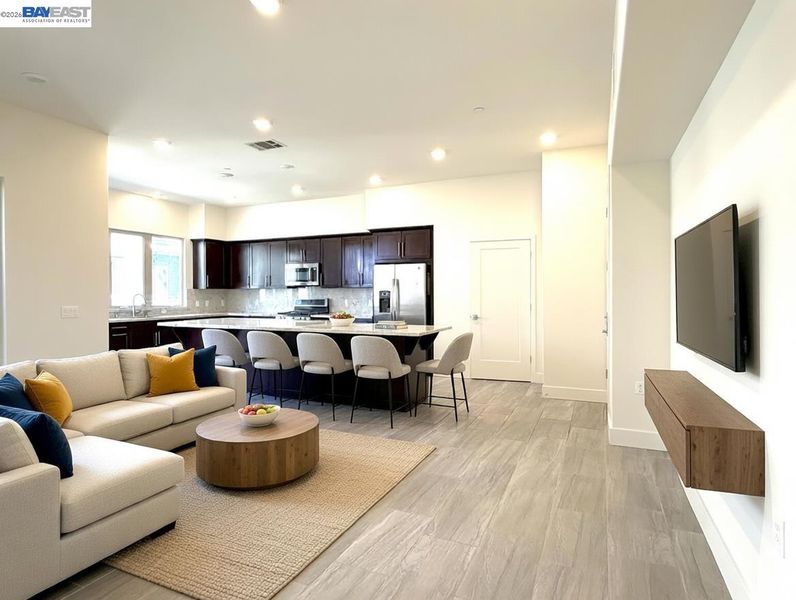 EXCELLENT Location, TOP-Floor with High ceilings, Spacious kitchen and true Single-Level Living with no stairs! Presenting a beautifully upgraded Lennar-built condo offering a spacious 3 bed, 2.5 bath flat on the top floor with abundant natural light through large windows in a prime location. This Freshly painted WiFi-enabled smart home features tile flooring in the great room and an open-concept layout with a gourmet kitchen showcasing quartz countertops, a wow-size island, gas range, and stainless steel appliances—perfect for everyday living and entertaining. Enjoy year-round comfort with central A/C and heating, along with the convenience of an in-unit washer, dryer, and tankless water heater. Built recently, this home is covered under Lennar’s 10-year builder warranty through 2028 and is located in a secure community with 24/7 locked buildings, no known HOA rental restrictions, and HOA covering water and trash. The home includes a 2-car garage and private elevator access directly to your unit. A commuter’s dream—walk to BART and VTA, close to San Jose Airport, Great Mall, Ranch 99, and with quick access to 880, 680, 237, and 101, plus top-rated elementary schools nearby, close to many top IT companies—making this a rare, move-in ready opportunity in a highly desirable location.