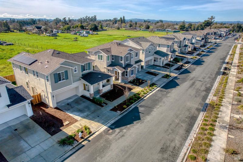 Welcome to 2733 Amora Circle, a stunning nearly new home built in 2024, offering 4 bedrooms, 3 baths, and an additional upstairs living area across 2,474 sq. ft. of thoughtfully designed living space. Enhanced with numerous designer upgrades and owned solar, this home seamlessly blends modern style, energy efficiency, and everyday functionality. Soaring 9-foot ceilings and a light-filled open-concept layout create an inviting atmosphere ideal for both daily living and entertaining. The chef's kitchen is a standout, featuring designer quartz countertops, LG stainless steel appliances, ample cabinetry, and a spacious layout that flows effortlessly into the living and dining areas. Smart dual-zone thermostats provide efficient climate control, while owned solar delivers long-term energy savings and sustainability. The flexible upstairs living area is perfect for a second family room, media room, or home office. Well-proportioned bedrooms offer comfort and privacy, including a spacious primary suite designed for relaxation. Enjoy indoor-outdoor living with a covered patio ideal for dining, entertaining, or unwinding. Conveniently located near a community park and close to shopping, dining, schools, and major transportation routes, this exceptional home offers modern living in a prime Santa Rosa setting.