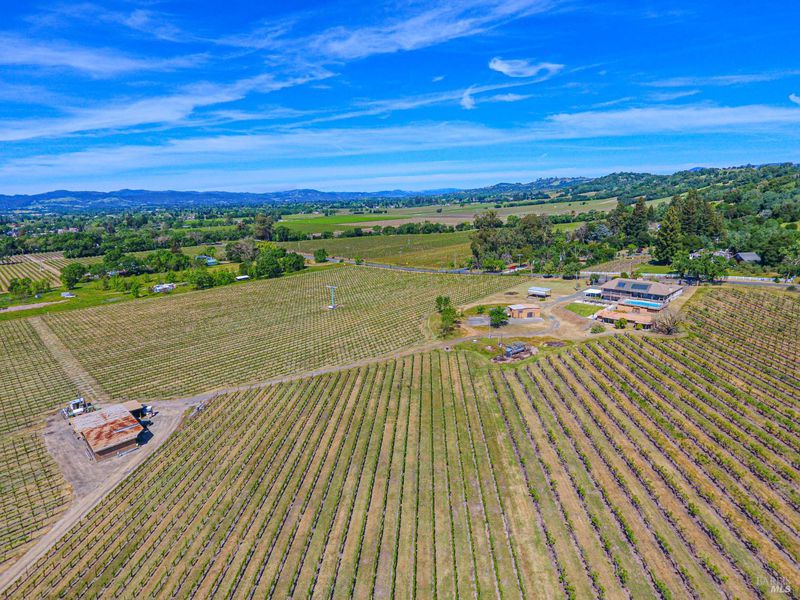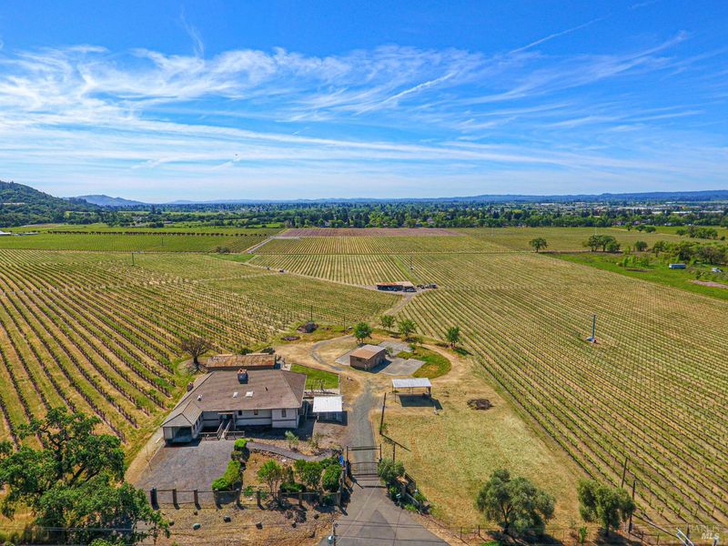 Welcome to the Shiloh Vineyard estate. This property presents a rare opportunity to reimagine a spacious 4,178+/-sf main structure on over 7 acres of rolling meadow and vineyards with breathtaking sunset views. The home is known to be very well built with signature engineering elements like low voltage switching, spray in wall insulation, heated floors in garage conversion, the use of pool water to cool the home, the design of the above ground pool has been extremely effective in preventing plaster cracking, and more. There are also two additional assessory structures on the property. One is a tunnel dehydrator used back in the day for drying prunes totaling about 737+/-sf and a 1,200+/-sf multi-purpose building. Property also has ample on-site water storage. Nestled in Sonoma County's world-class wine country, the property offers a tranquil setting, natural beauty, and lots of long-term potential. The on-site vines are professionally managed and maintained under an agricultural lease, blending lifestyle and agricultural benefits seamlessly without the cost. The estate includes a main residence ready for your vision to come to life with renovations already underway like the kitchen being demoed, acoustic ceilings scraped, some flooring and sheetrock removed. There is also an outbuilding offering a blank slate to create a separate space, a rustic barn, and ample room for expansion perfect for contractors, investors, or buyers looking to craft a custom wine country retreat. Conveniently located just minutes from Windsor and Santa Rosa, the property provides easy access to Highway 101, top-rated schools, shopping, dining, and daily amenities. Santa Rosa serves as the gateway to Sonoma County's celebrated wine regions and vibrant downtown, with restaurants, cultural attractions, and local charm nearby. This is a rare chance to transform a vineyard-view estate in a highly desirable location offering rural tranquility with the convenience of town nearby, ideal for a private estate, investment project, or dream wine country home.