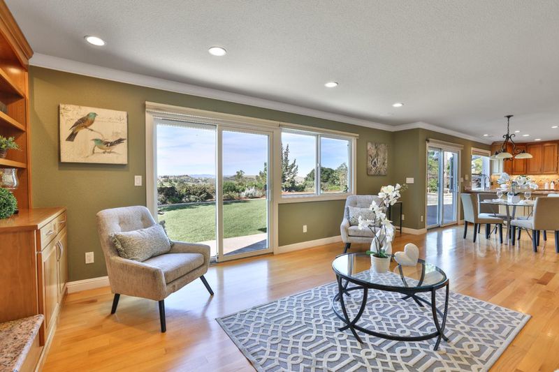 Best VIEWS in the Evergreen Valley from this meticulously maintained home in The Meadowlands. Located on a 25,000+ sf lot and landscaped to perfection to offer both privacy, breathtaking views & fabulous sunsets. The large backyard is equipped with a built-in pool, spa, pergola, lawn play area & planter boxes in the rear yard for the gardening enthusiast. The interior of the home has 2768 sf of gorgeous living space with 4 bedrooms & 3 full bathrooms. Oak hardwood flooring flows throughout. The main floor bedroom was remodeled to include cherry cabinets, built-in desk, Murphy Bed plus a walk-in closet. Across the hall is a full bathroom with a walk-in shower. The Chef's kitchen is equipped with granite counter tops, cherry cabinets, stainless steel appliances, six burner stove, double ovens, pantry with pull out shelves and recessed lighting. The adjacent family room has cherry cabinetry, bar area with beverage fridge & a gas fireplace. Upstairs is the primary suite with gorgeous views, ensuite bathroom & walk-in closet. Completing the upstairs are two additional generously sized bedrooms and a beautifully remodeled hallway bath. Additional upgrades include Milgard double- paned windows throughout, NEST thermostats, and dual air & heat. Move-in ready! A spectacular must see home!